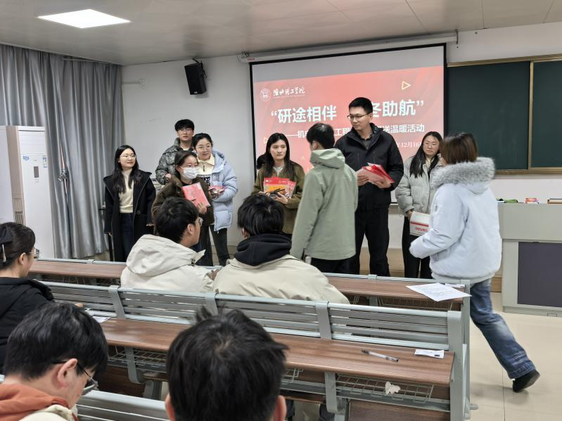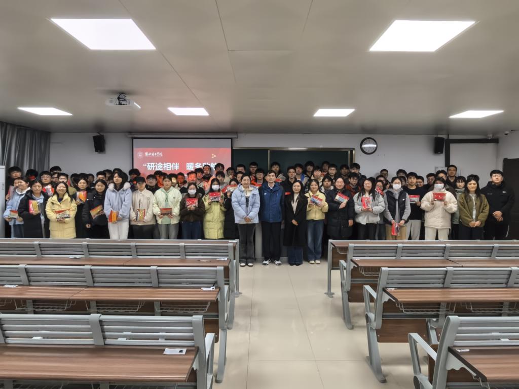 2026年全国硕士研究生招生考试初试将于12月20日正式开始,为给学院考研学子在冲刺阶段加油打气、缓解压力,12月16日下午,九游体育官方网站于一教320教室成功举办“研途相伴·暖冬助航”考研送温暖活动,为全体考研学生送上定制文具礼包与学院真挚祝福,学院党总支书记、院长张安宁、书记助理邓金鑫及毕业班辅导员老师共同参加,活动由张鹏老师主持。