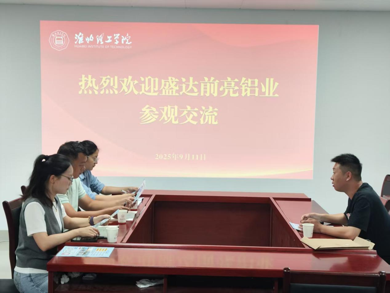 为进一步促进与企业协同发展,实现人才培养与企业需求的精准对接,2025年9月11日上午,安徽盛达前亮铝业有限公司代表郜经理走进九游体育官方网站九游体育官方网站,双方围绕实习合作、人才培养等方面展开深入交流,学院教师周大鹏博士、院党总支书记助理邓金鑫、就业小组成员张鹏和方天亲参与交流。