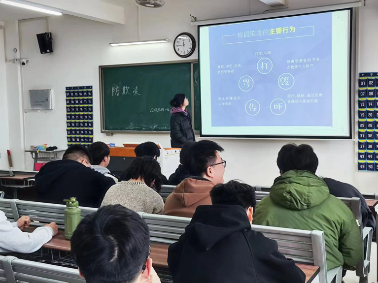 班会现场,辅导员向同学们详细介绍了校园霸凌的定义、形式及其危害性。通过生动的案例和观看视频,深入浅出地剖析了霸凌行为给受害者带来的身心伤害,以及对校园风气的严重破坏。辅导员强调,每个同学都应该树立正确的是非观念,坚决抵制任何形式的霸凌行为。班长们通过分享身边的实际案例,让同学们更加直观地认识到校园霸凌的严重性。这些案例中有受害者因受到霸凌而陷入自卑、抑郁的困境,也有加害者因盲目跟风、缺乏是非观念而走上歧途。班长们以案说法,引导同学们深刻反思,认识到自己的行为可能给他人带来的伤害。