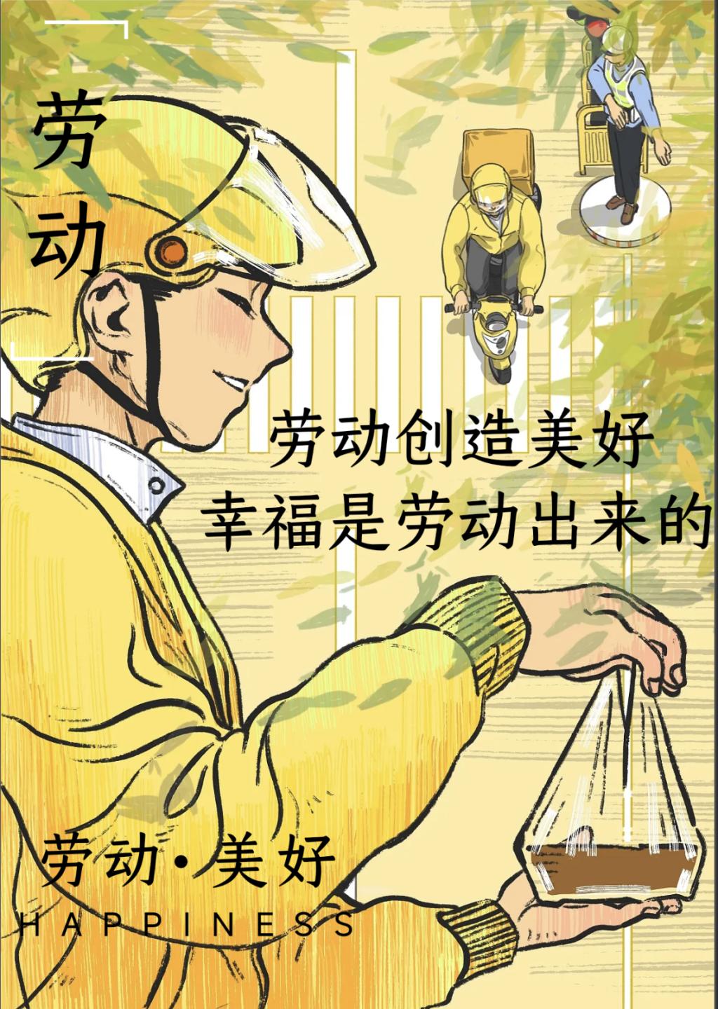 本次活动吸引了众多学生的积极参与,同学们以独特的视角和细腻的笔触,将劳动的美好瞬间定格在画布上。一幅幅精美的电子海报作品,或展现工人们辛勤劳动的身影,或描绘农民丰收的喜悦,或呈现建筑工人汗水与智慧结晶的壮丽建筑,无不彰显着劳动的力量和美好。