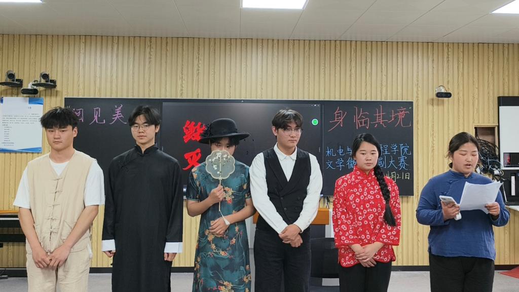 比赛现场座无虚席,气氛热烈。在主持人详细介绍比赛规则后,九支参赛队伍依次登台,为观众带来了一场精彩纷呈的文学盛宴。参赛作品题材丰富,既有《红楼梦》《西游记》等古典名著的创新演绎,也有《雷雨》等现代经典的生动再现。各团队通过精心的剧本改编、生动的表演和富有创意的舞台设计,将文学作品中的经典场景和人物形象栩栩如生地呈现在观众面前。现场掌声不断,师生们沉浸在文学与艺术交融的独特魅力中。