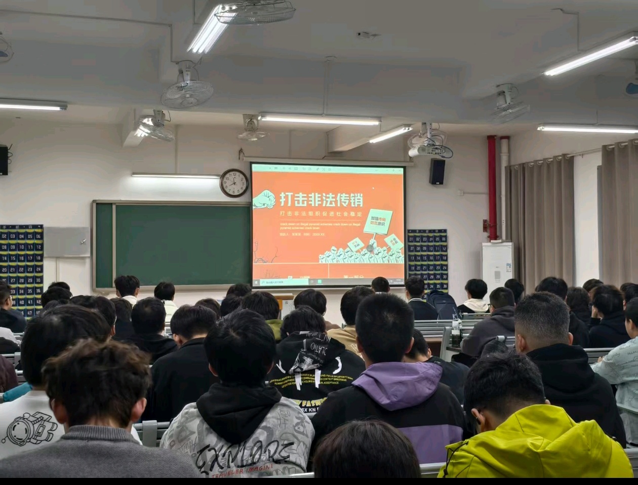 本次活动以“筑牢安全防线,远离传销陷阱”为核心,旨在通过集体学习的形式将反传销教育融入学生们的日常生活中。各班班会形式多样、内容详实,班委们精心准备了PPT和案例视频,向同学们系统拆解了传销活动的常见“套路”,如“高薪诱饵”、“情感绑架”、“虚假项目投资”以及“拉人头”的层级计酬模式等。通过对这些典型特征的分析,同学们对传销的欺骗本质和严重危害有了更清醒、更深刻的认识。